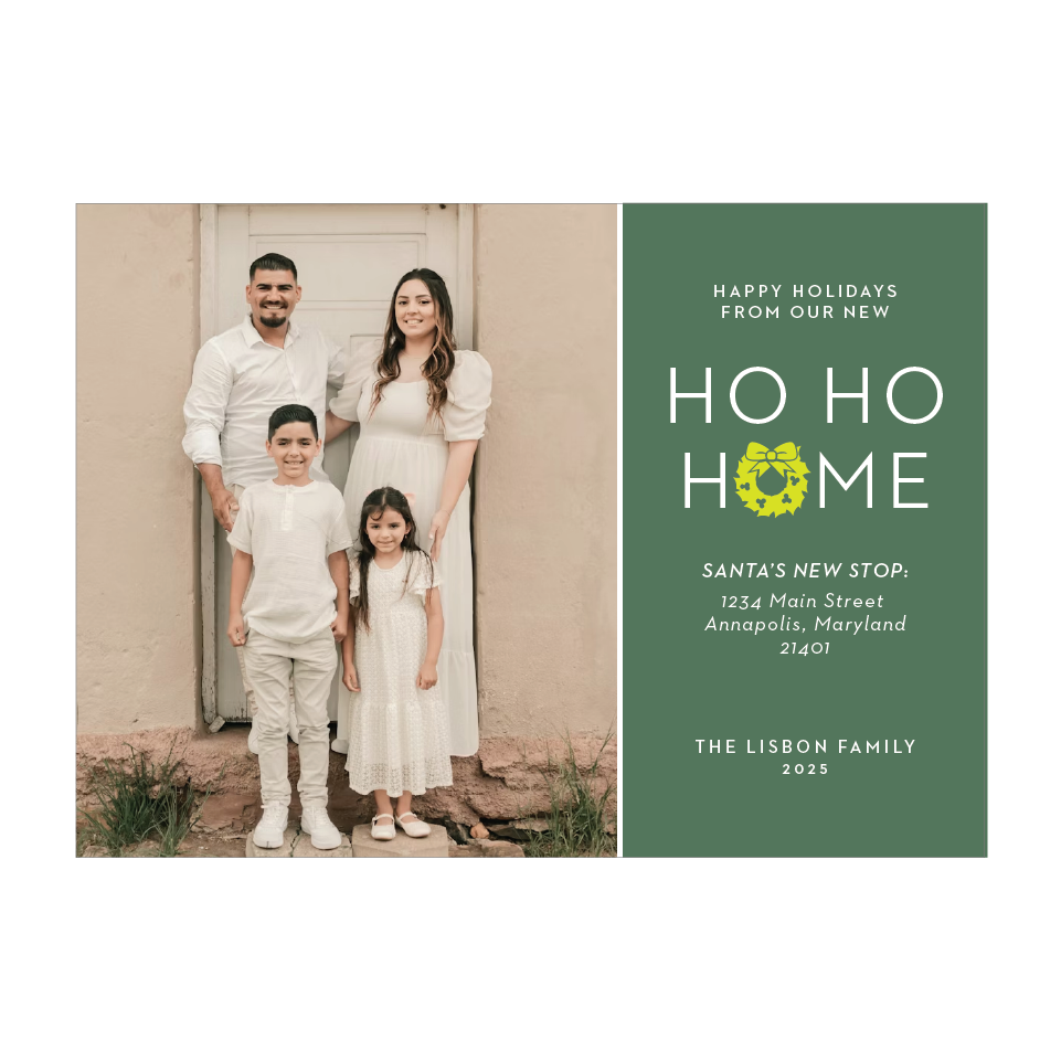 Announce your new address with a ho ho home for the holidays card.
