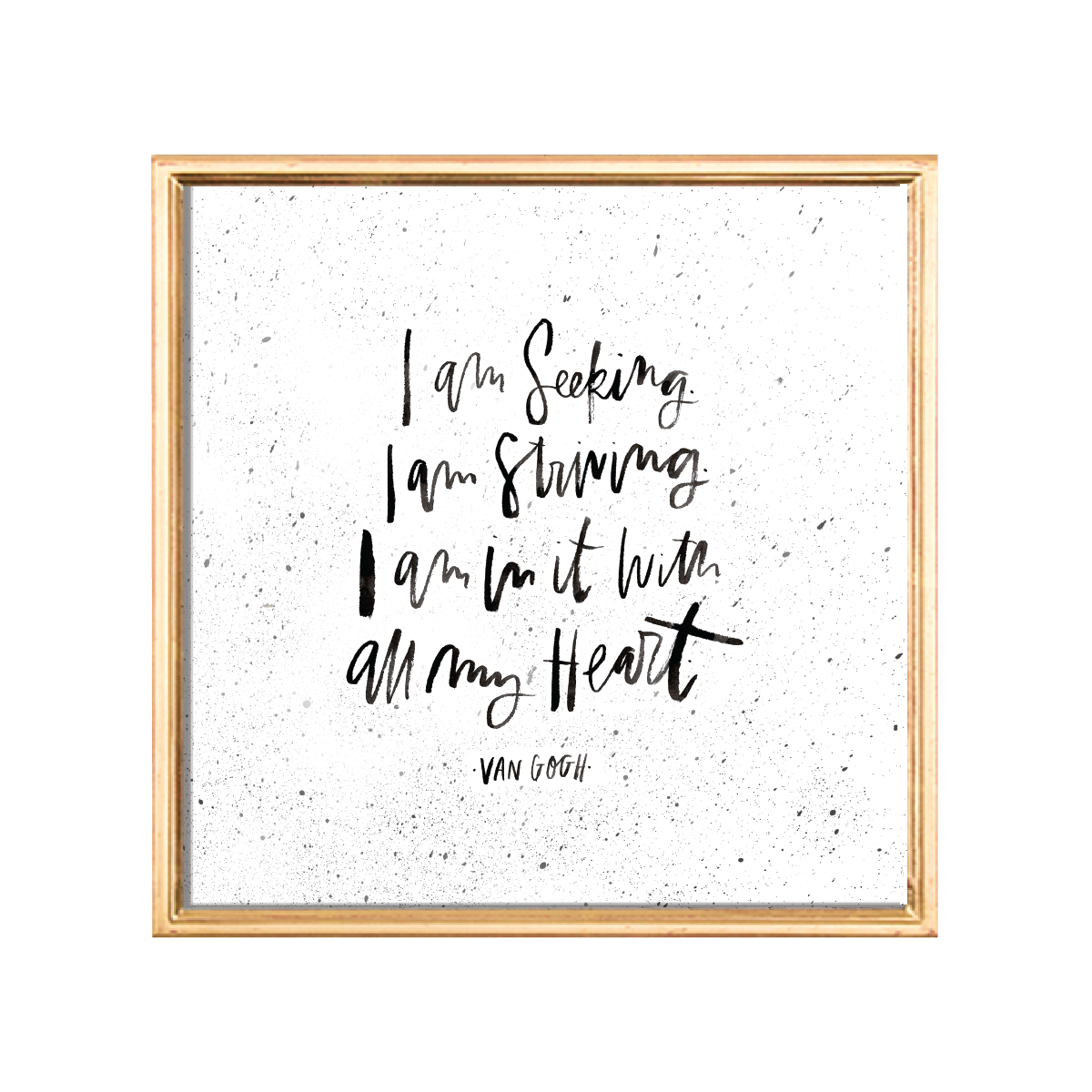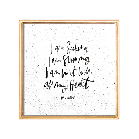 "I am seeking, I am striving, I am in it with all my heart"- van Gogh's perfect quote for creatives, handlettered with a brush & gouache.