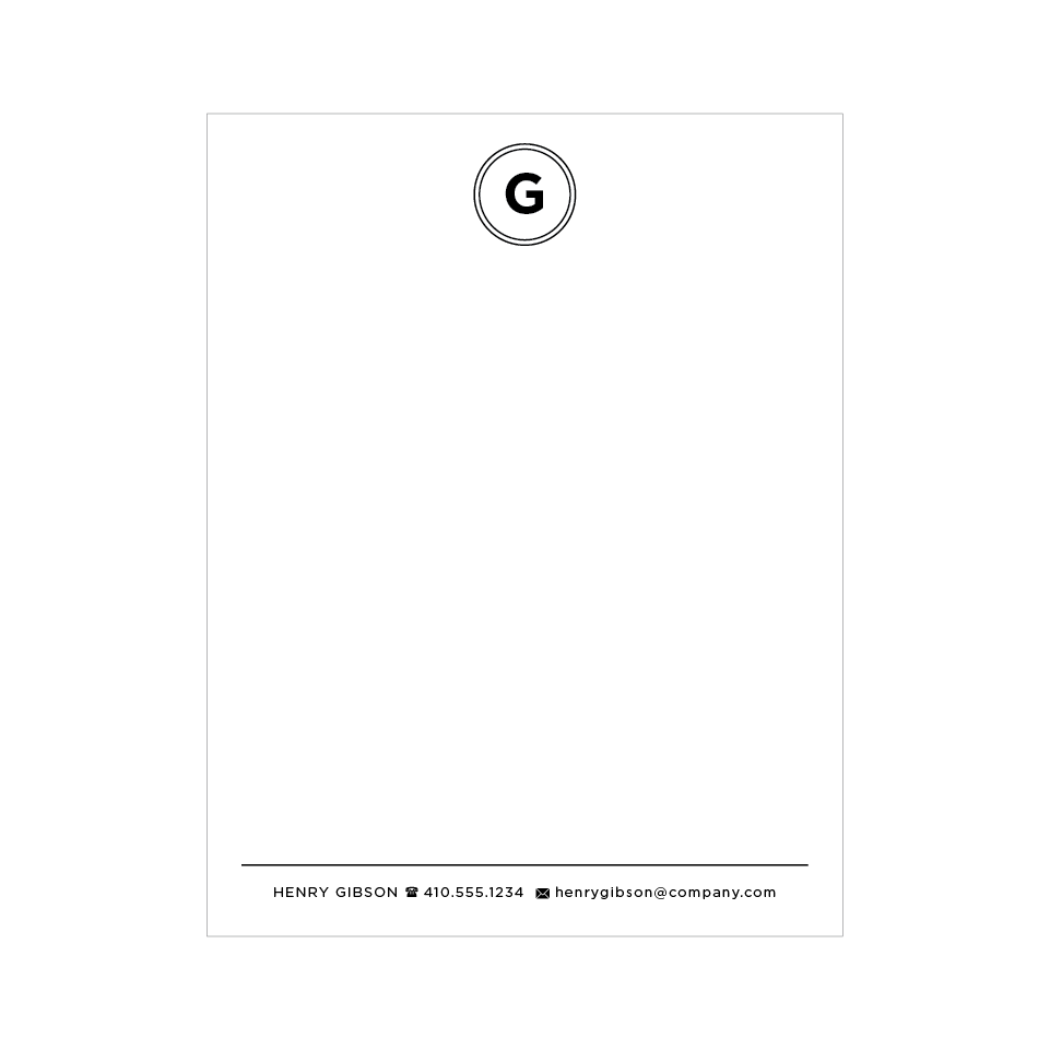 Personalized notecards with a simple monogram and customizable with your contact information.