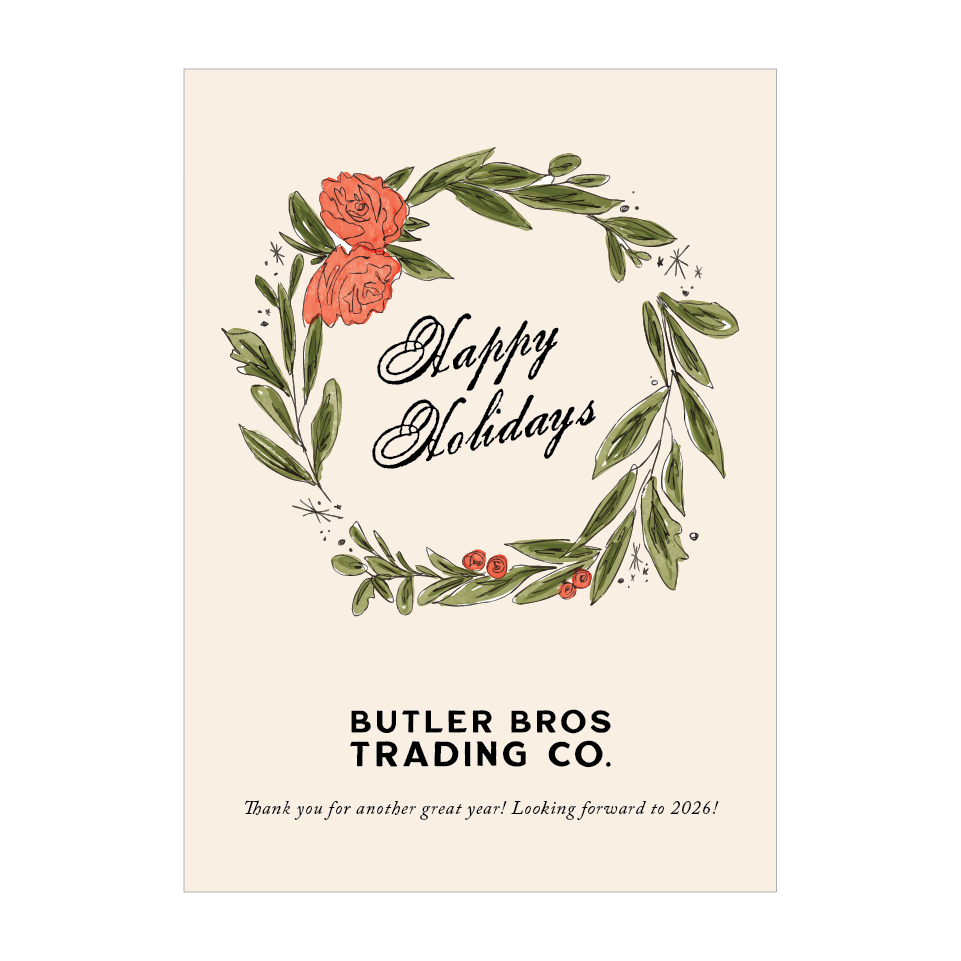 A handdrawn ink wreath and vintage inspired type make a holiday statement.